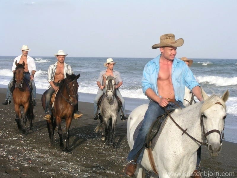 A beat of surprised silence, then the group broke into grins. Boots thudded across the porch. Hands met hands in rough, friendly slaps. The air filled with the scent of leather and sunscreen as the virile young men began to strip down, and something unspoken moved between them — the hint of possibility, of late-night orgies and amazing sexual release. The ranch was open; now it was up to them what the weekend would become.