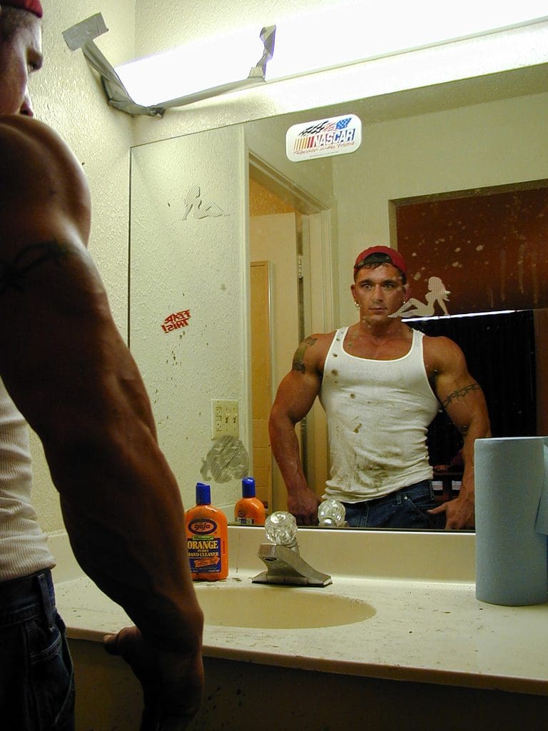 Tony wasn't Tony DeFina when we met. He had seen my work and my sites and came to me wanting to do photos, videos, anything we could ask of him he was eager to do. Turns out these shots were from his first professional shoot; I would never have known he was wet behind the ears when we first set up for these sessions if he hadn't expressed his nervousness. By the end of the first weekend we worked together (we shot tons of stills plus a solo video) he was like a seasoned veteran in front of the camera. But he didn't have a name to use in the industry and asked me to help him craft one. Tony DeFina really summed him up, in my opinion. Choose either of the thumbnails below to see the images of Tony in the book.